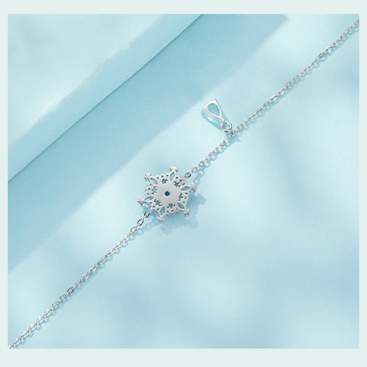 Capture the magical shimmer of winter with our Aurora Snowflake Bracelet. This enchanting piece features a delicate snowflake charm that catches the light beautifully, creating an aurora-like sparkle with every movement. Handcrafted from premium 925 sterling silver, this bracelet brings the wonder of a winter wonderland to your wrist.