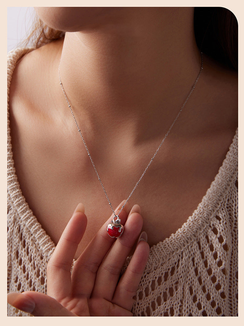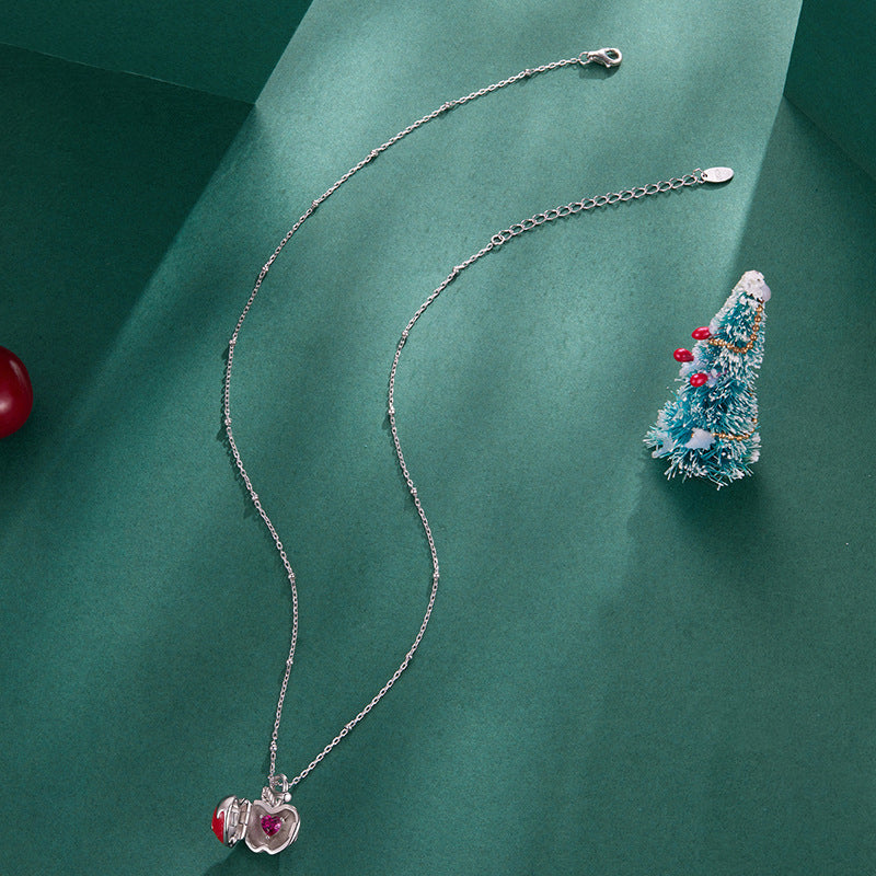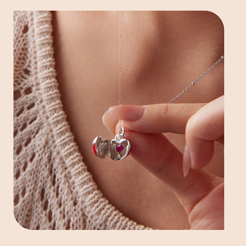 Discover the magic of this enchanting apple pendant necklace! This unique piece blends timeless elegance with heartfelt charm. Crafted from sterling silver, the apple pendant opens to reveal a special compartment housing a delicate pink diamond heart—a perfect fit for your heart.