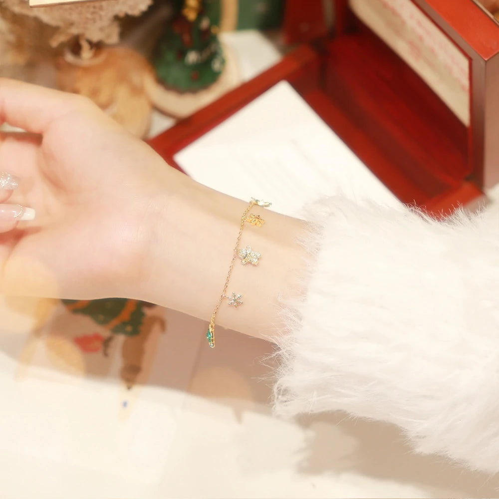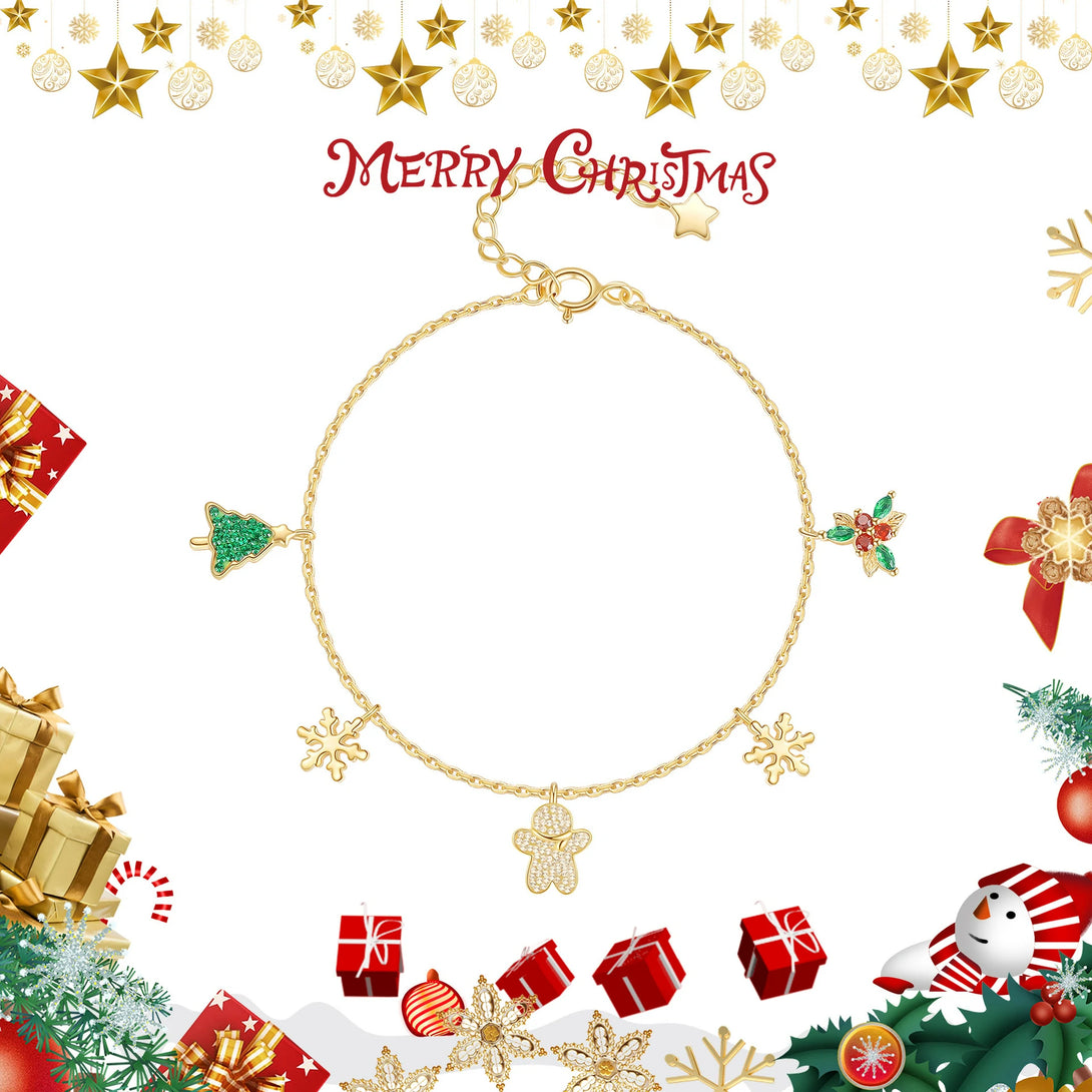This delightful bracelet features adorable Christmas tree and gingerbread man charms—perfect for adding seasonal sparkle to your wrist.