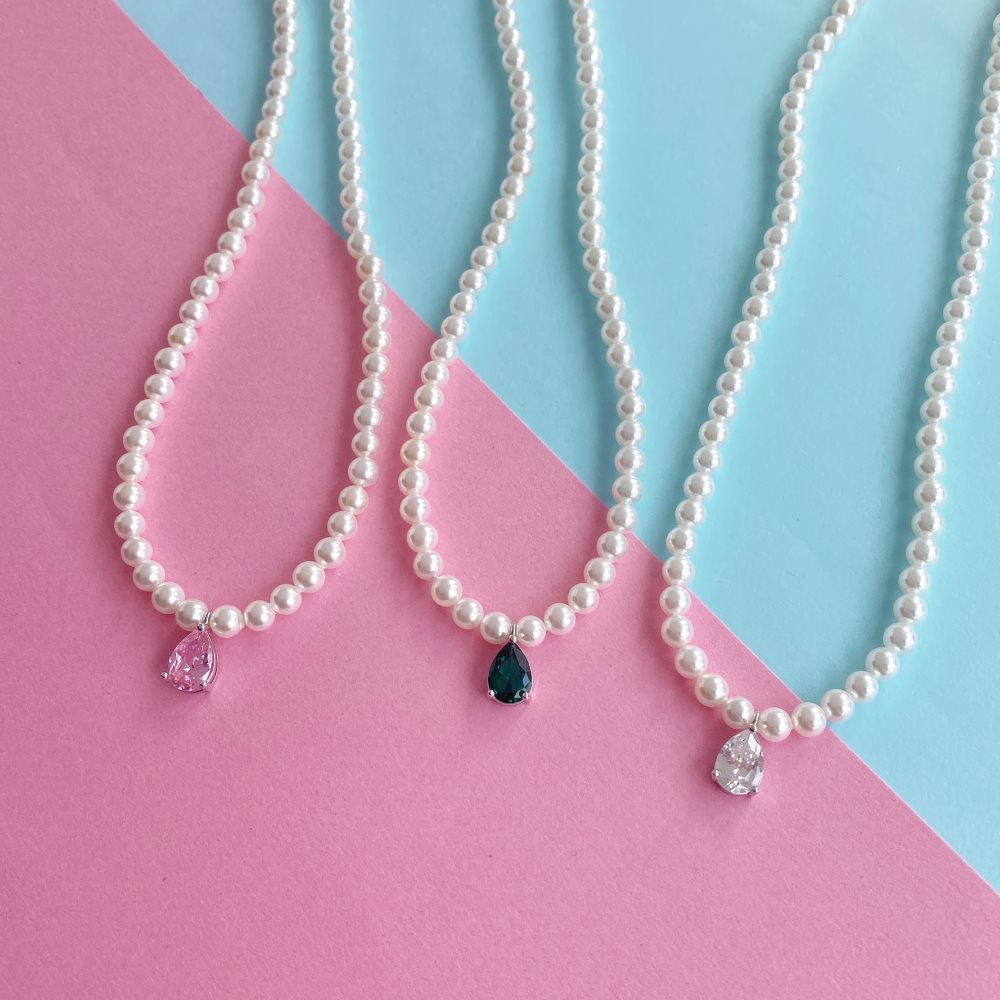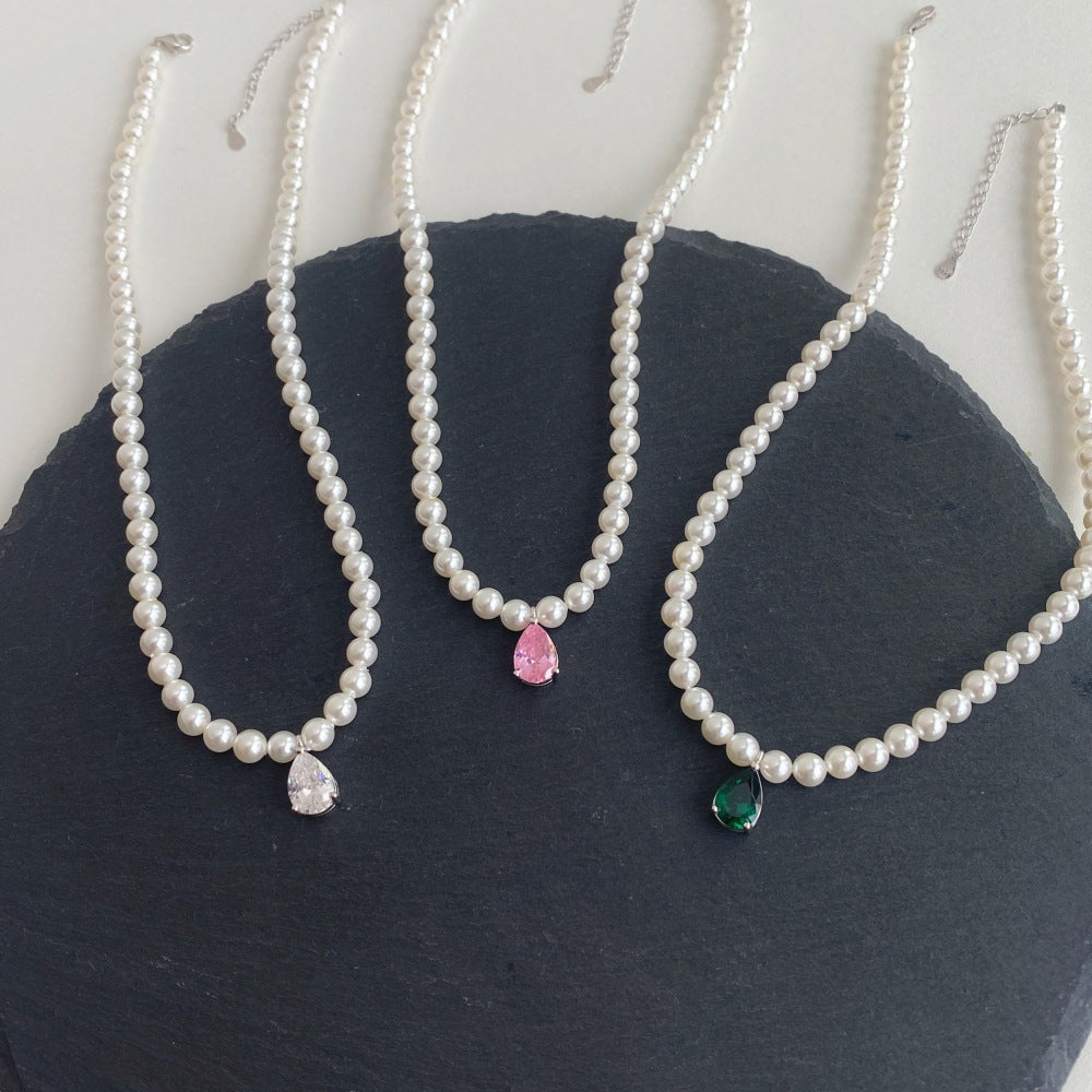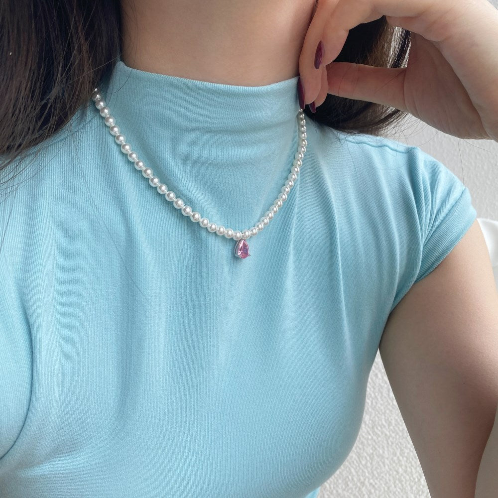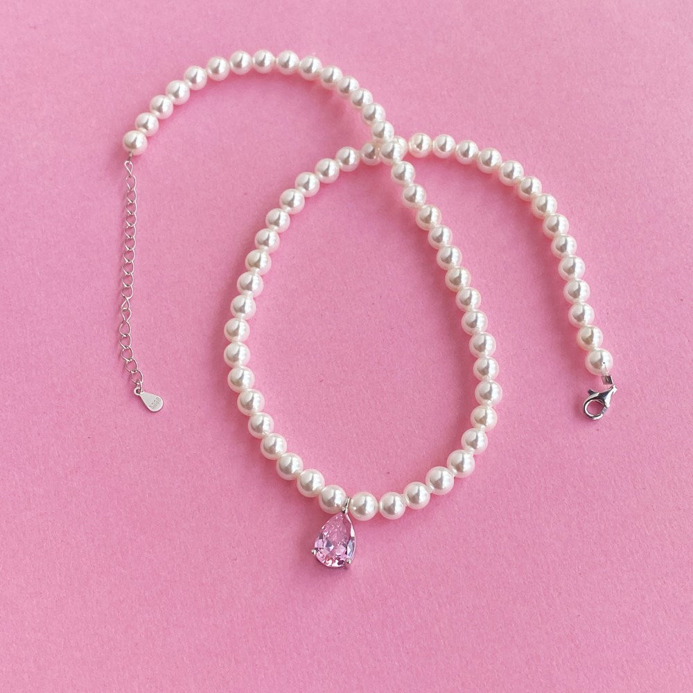 Dreamy Barbie Pear-Shaped Teardrop Pendant Pearl Necklace with Elegant Pearl Lock Chain