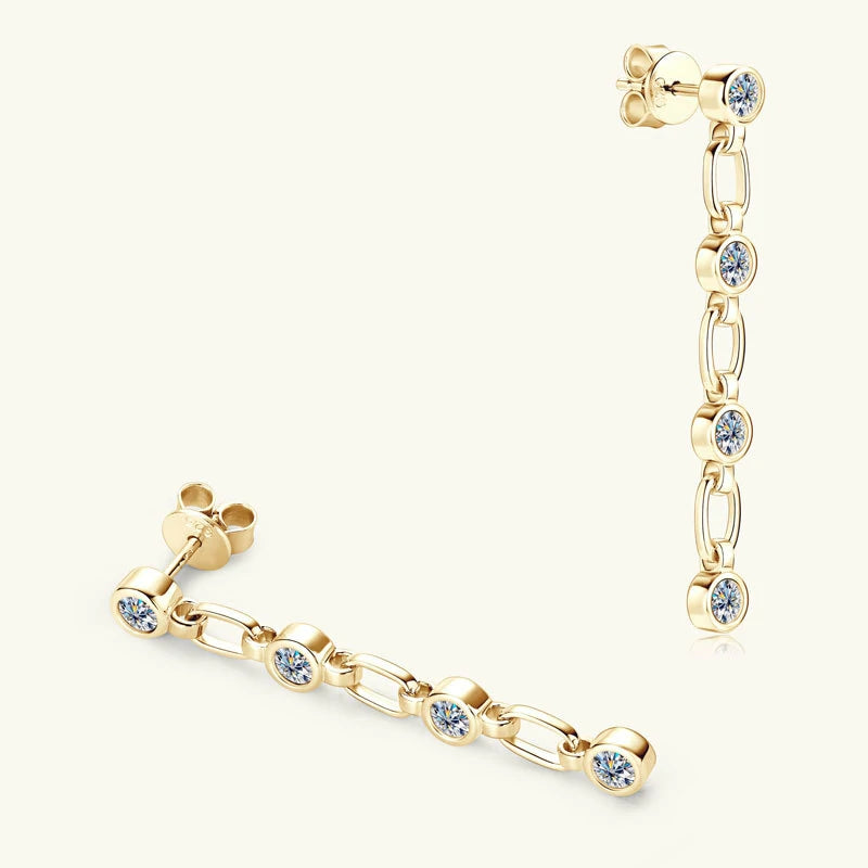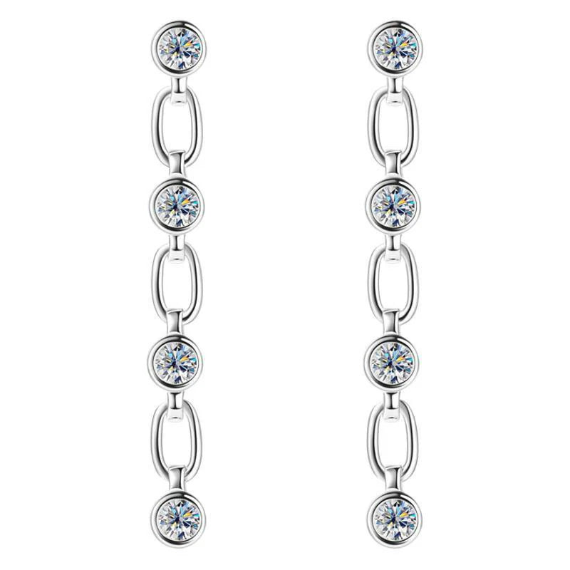 These stunning fringe chain earrings bring dynamic elegance to any look. Featuring delicate cascading chains adorned with brilliant moissanite stones, they catch the light beautifully with every movement. Perfect for adding a touch of glamour to both casual and dressy occasions.