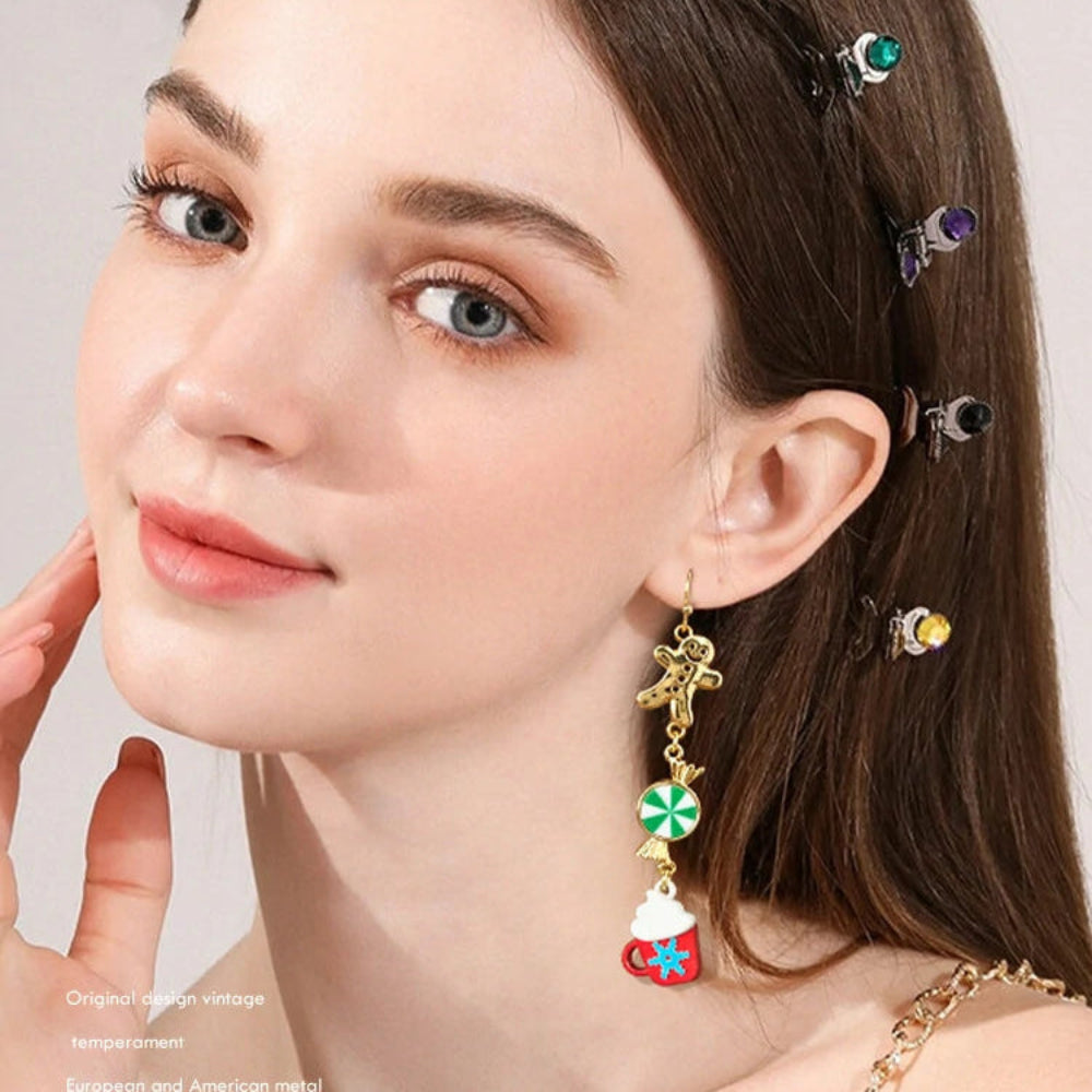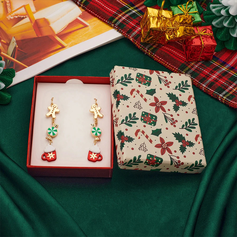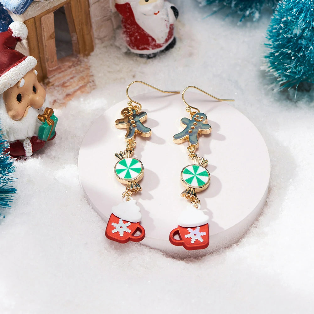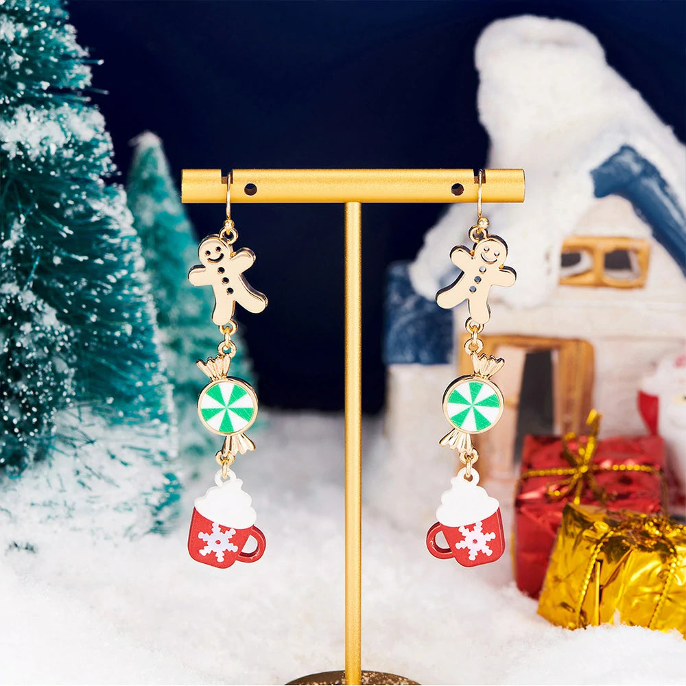 These delightful gingerbread man candy earrings combine whimsical holiday spirit with premium craftsmanship. Featuring adorable gingerbread man designs with candy-inspired details, these stud earrings add a playful, festive touch to any winter outfit.