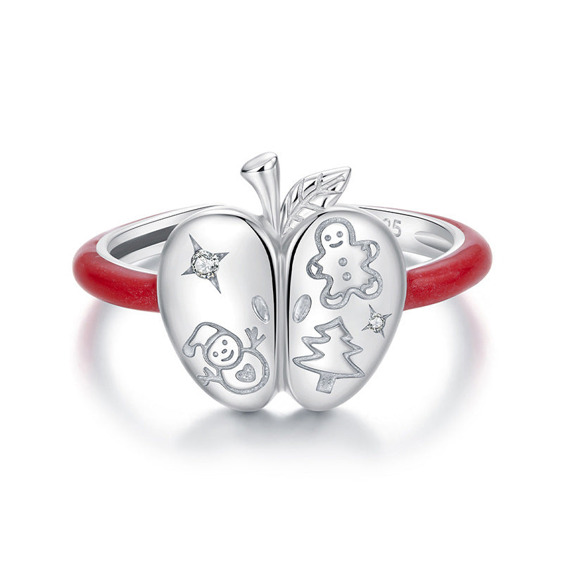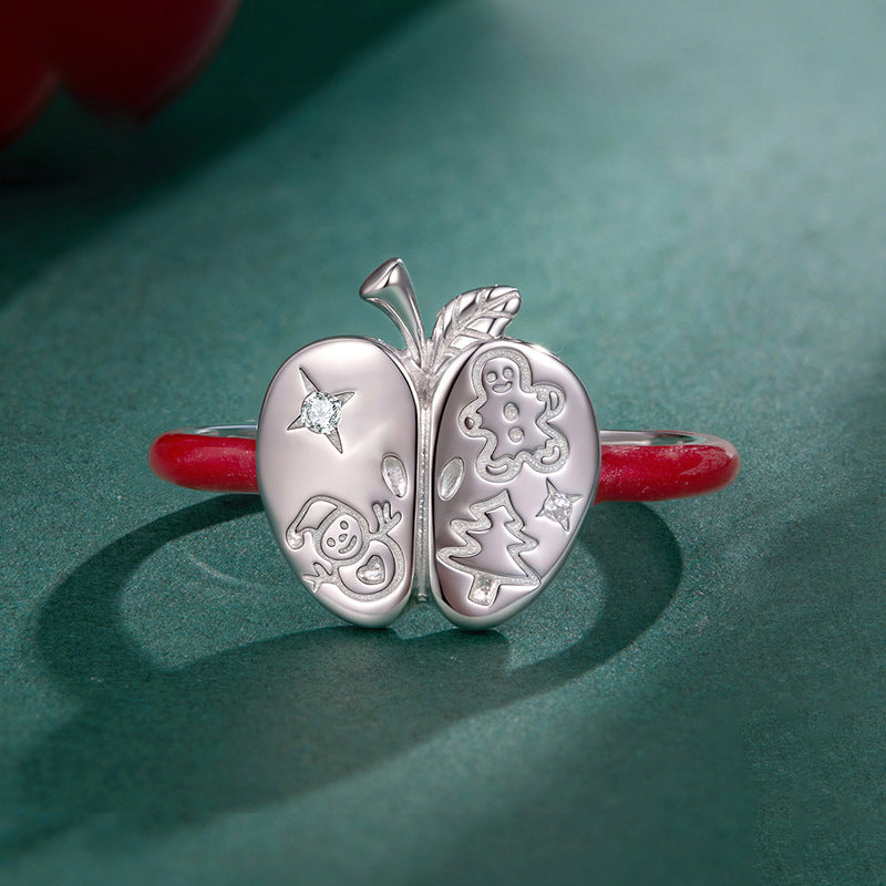 This unique creative apple ring draws inspiration from Christmas apples, symbolizing peace and happiness. The exquisite apple design, adorned with sparkling zirconia accents, carries festive warmth while maintaining a fashionable and elegant charm. Whether worn personally or gifted, it conveys heartfelt blessings and affection.