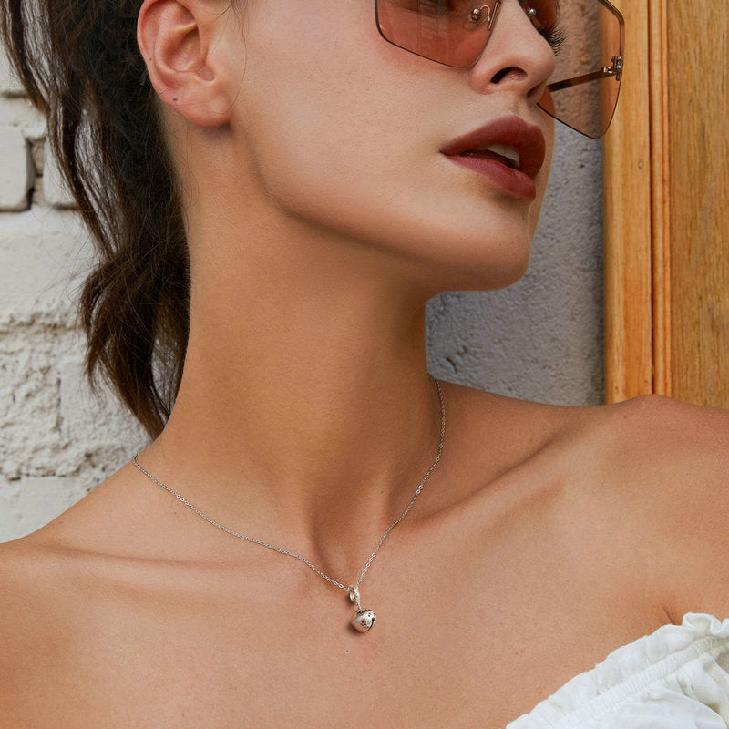 To maintain the necklace's brilliant shine, avoid contact with sulfides, cosmetics, and perfumes. Store in a jewelry box when not wearing to prevent scratches. Gently wipe with a soft cloth regularly to keep the silver lustrous.