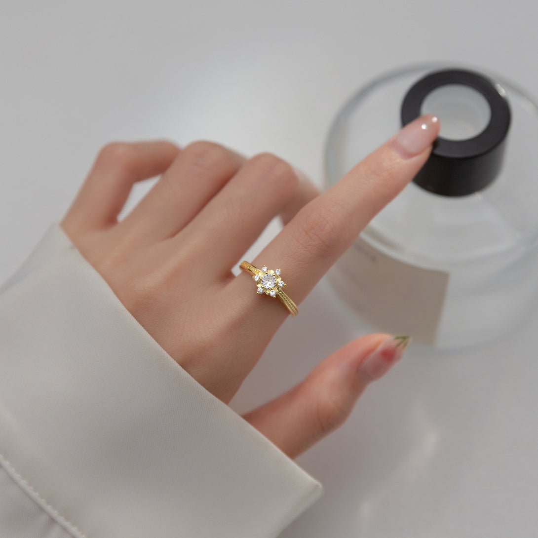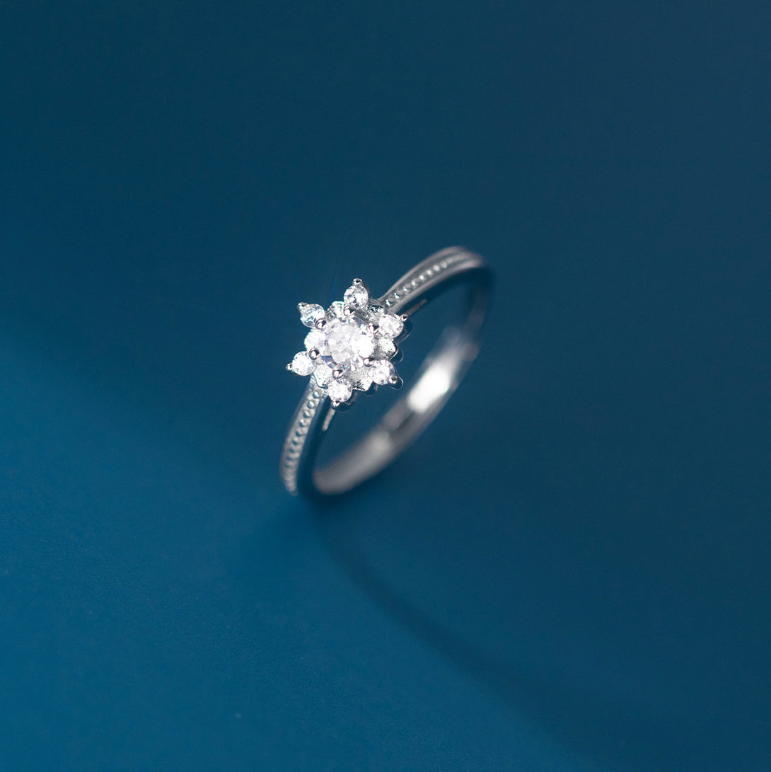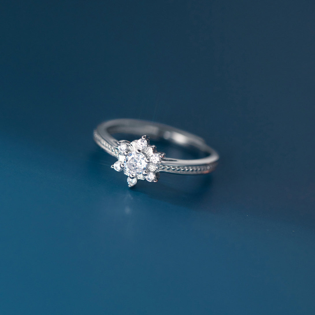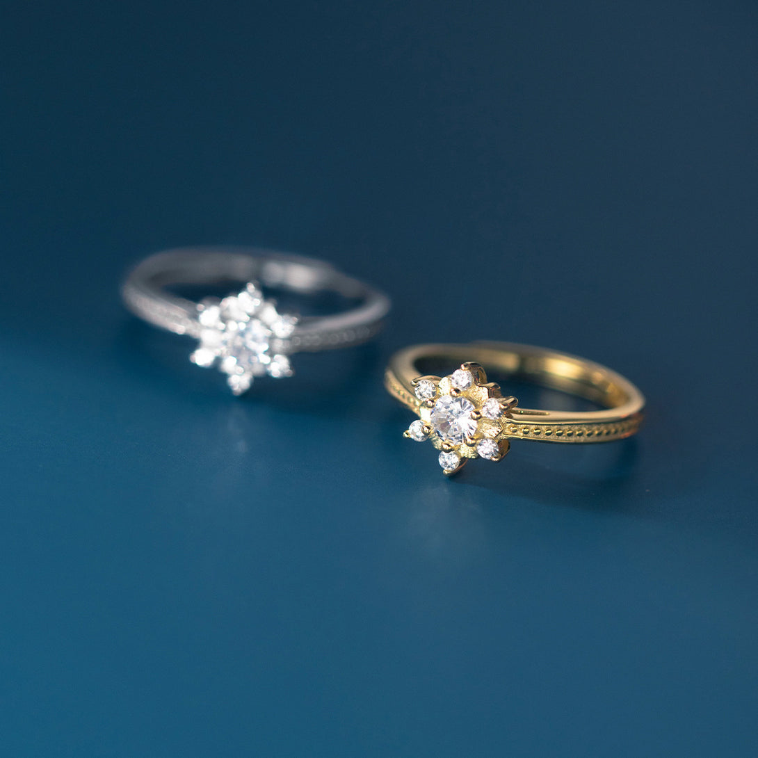 This exquisite snowflake ring perfectly captures winter's romance and elegance with its unique three-dimensional snowflake design. Each petal is meticulously carved to shimmer with captivating light, as if freezing winter's purity and beauty right on your fingertip.