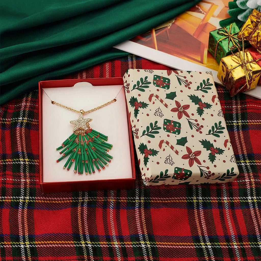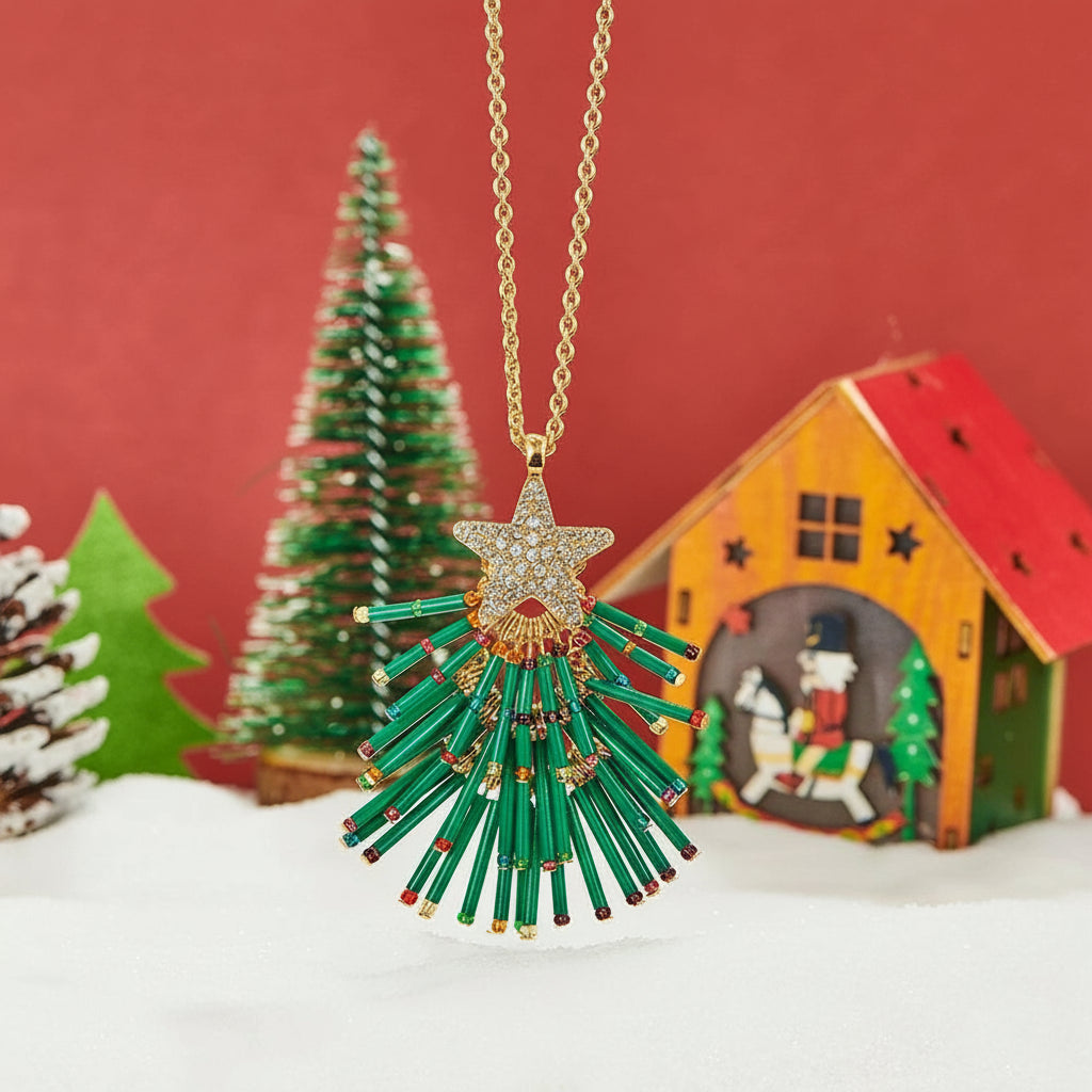 This enchanting star Christmas tree jewelry set features a coordinating necklace and earrings adorned with shimmering stars. Crafted from premium alloy with electroplating for lasting brilliance, this set brings festive sophistication to any holiday celebration or makes a thoughtful gift for someone special.