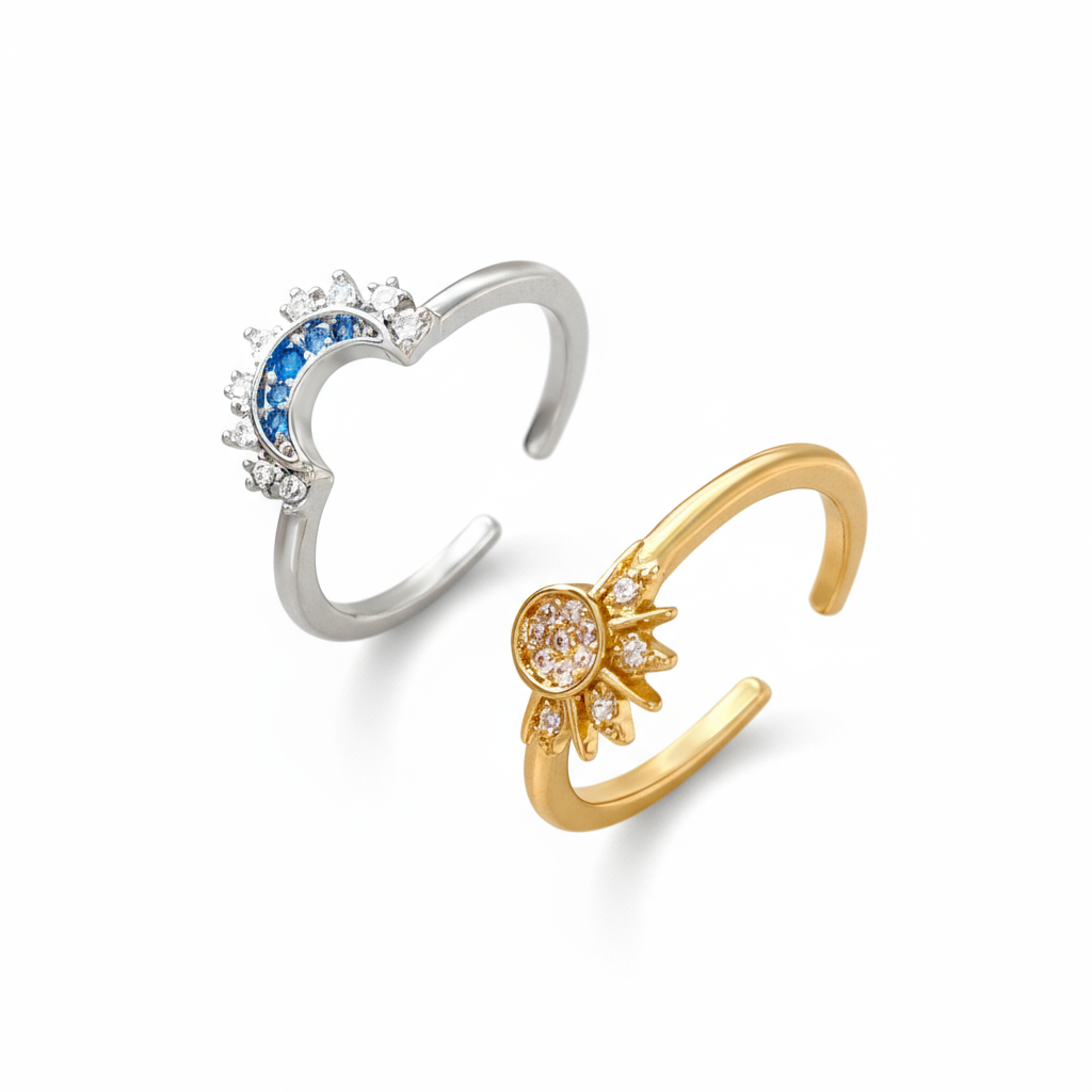 Moon Ring, Sun ring, Pair of Sun and Moon Rings |